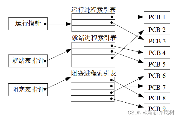 - 进程控制块PCB的组织方式有:线性表方式、索引表方式、链接表方式,以下为【索引方式】