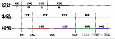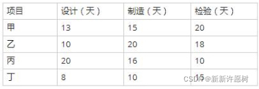 符合条件的方案:丁甲乙丙、丁乙甲丙,中间步骤按最大时间计算,总计为:84