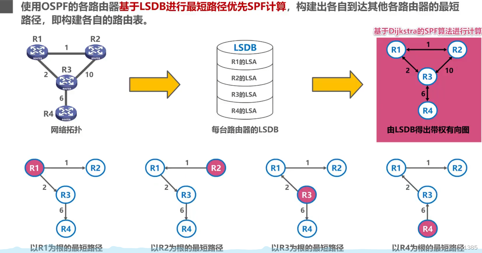就是一个 通过发送上述五个分组,不断 完善 更新 链路状态数据库的过程。