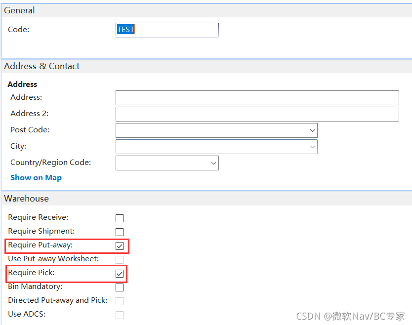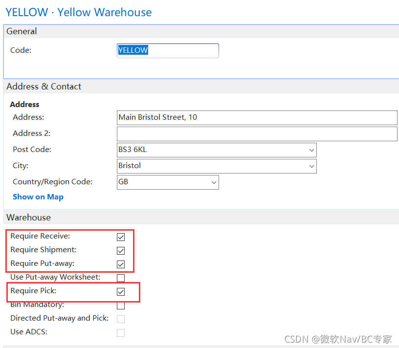是最简单的一种仓库管理,它用于管理基本的仓库活动,在接收采购订单时,会生成一个单一的仓库文件,我们称之为“库存位置”,以表明我们已收到物料并将其放在货架(或位置)上。 仓库卡片中需要设置Require Put-away,Require Pick。