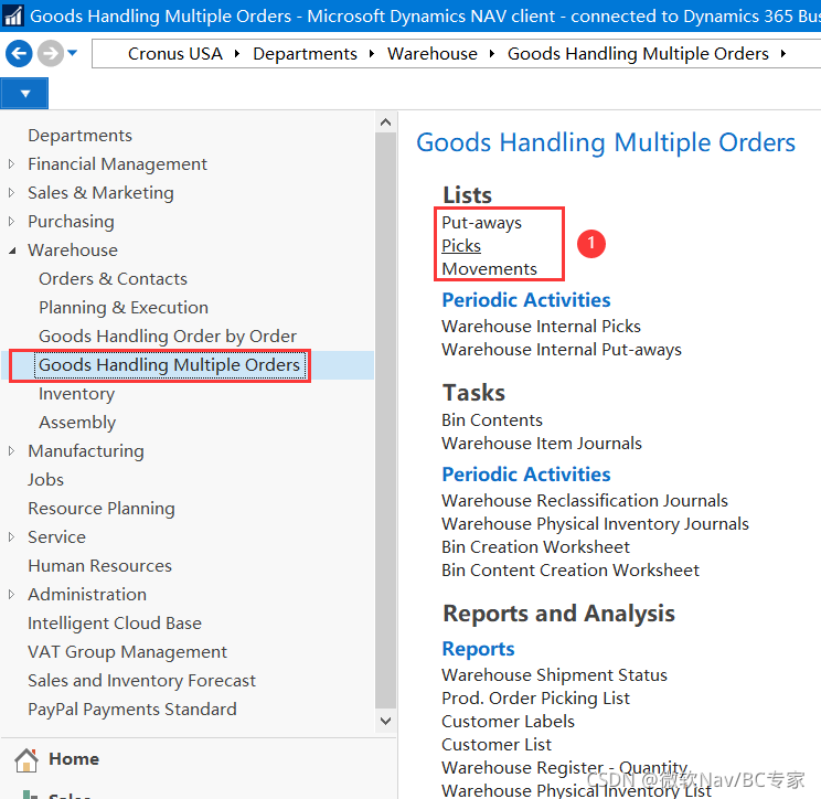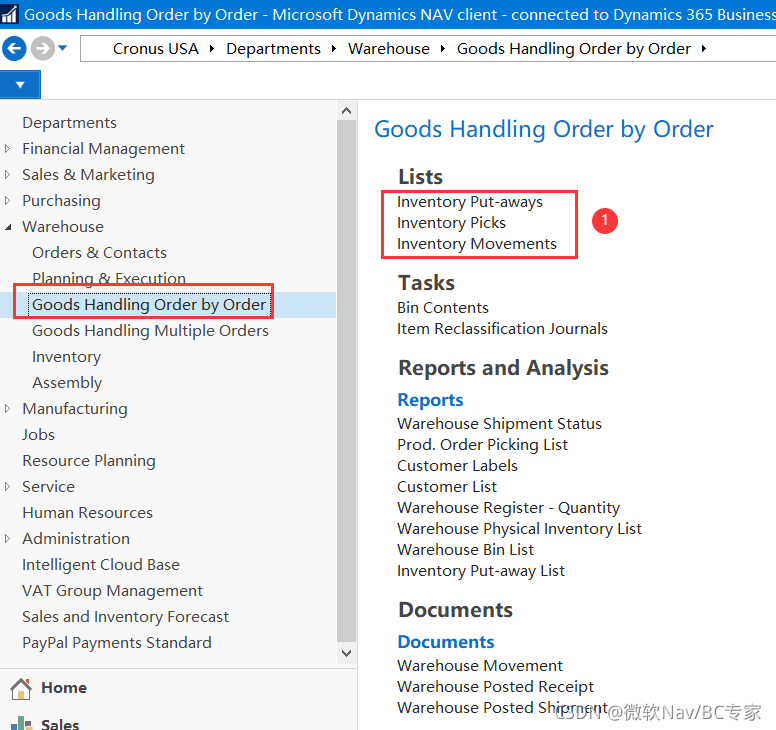 经常会遇到客户在问:Inventory与Warehouse到底有啥不同,其实说的就是下面这两张图片中①的不同在哪里?微软为啥要设计这两个模块?