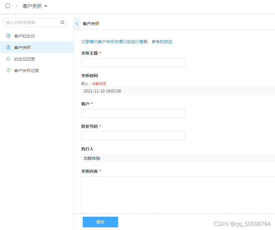 点击关客户关怀记录,可以看到所有以前的关怀记录,方便追溯