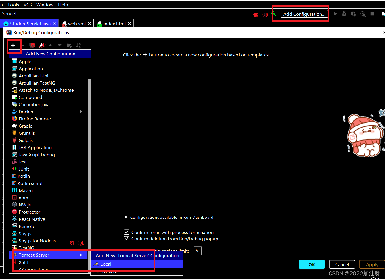 - 第七步:编辑配置文件,让 请求路径 和 Servlet 类名能够匹配上