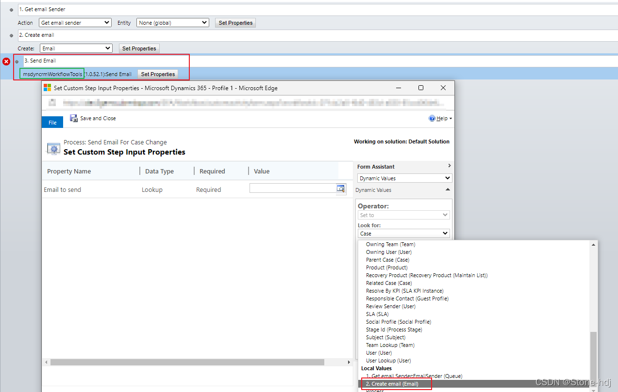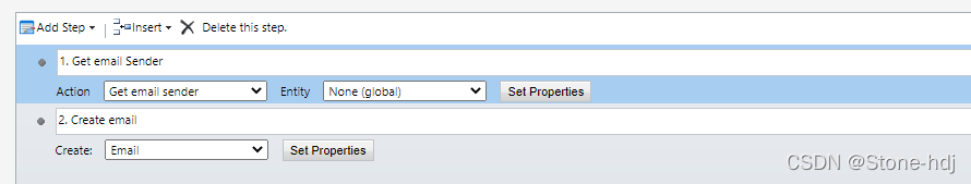 Note: 发送邮件这块我使用的是一个别人写好的一个聚合的插件, 感兴趣的话可以看我之前写的一篇文章: Dynamics 365 Workflow Tools的使用方法_Stone-hdj的博客-CSDN博客
