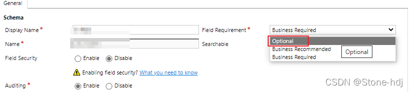 然后将Field Requirement的值改为Optional就OK了, 这样你就可以顺利在Form中移除这个字段了