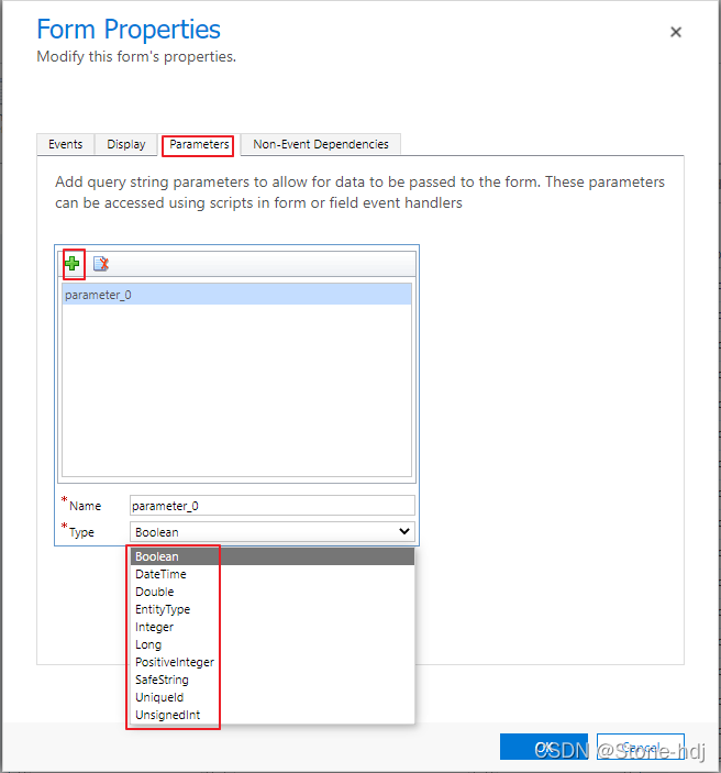 c. 进入Form Properties -> 选择Parameters