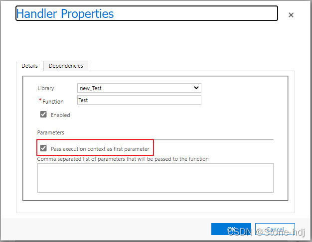 进入这个事件后, 选中'Pass executiuon context as first parameter', 这样就可以把上下文信息通过参数传给这个Test函数