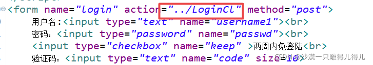 可以看到,index.jsp想要使用LoginCl.java的话,使用的地方需要是上一级目录,action如下:
