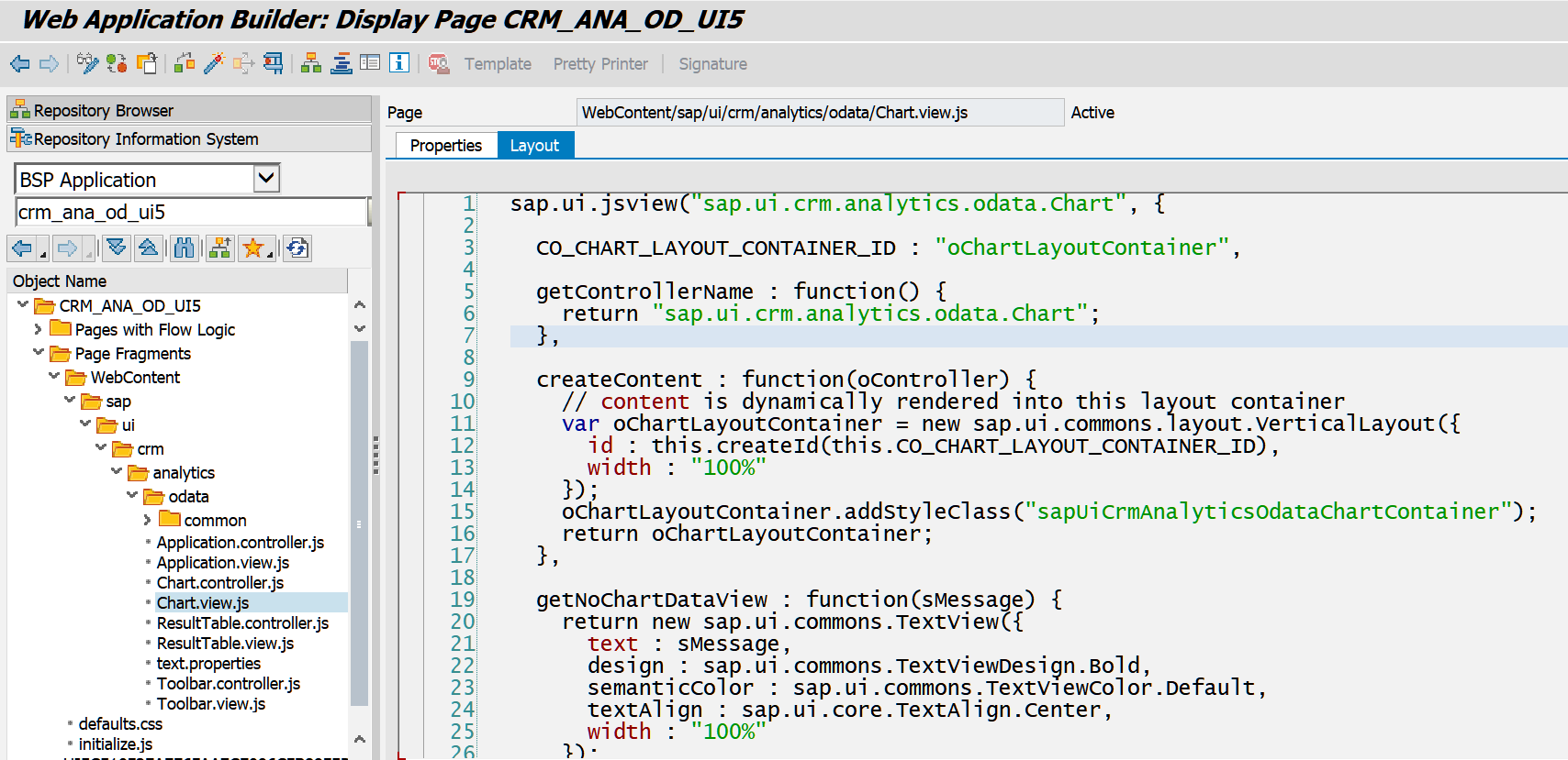 我们在 SAP CRM 里找到上图页面的 WebClient UI 应用名称为 CRM_ANA_OD_RTC, 后缀 RTC 即 Run Time Container,运行时容器。打开这个应用页面的 HTML 源代码,发现该页面只是一个壳(Wrapper),通过第 18 行的 iframe 元素,嵌入了另一个 SAP UI5 应用,其名称在第 19 行的 src 属性里能够找到:crm_ana_od_ui5.