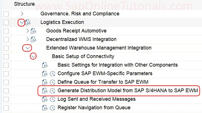 IMG Path: SPRO {Transaction Code} > SAP Reference IMG > Logistics Execution > Extended Warehouse Management Integration > Basic Setup of Connectivity > Generate Distribution Model from S/4Hana to SAP EWM
