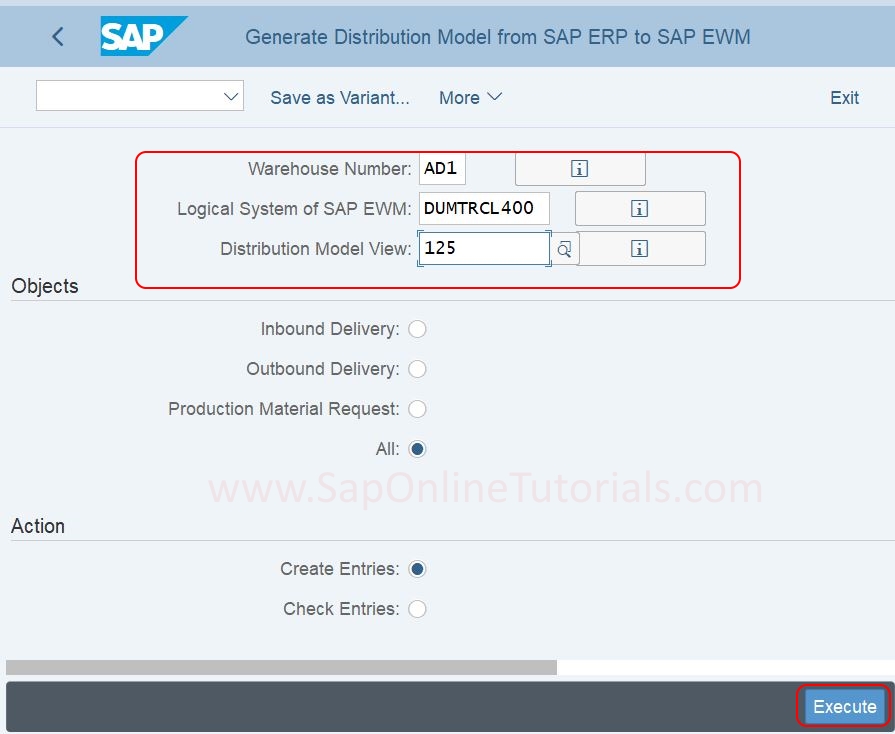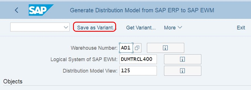 - Warehous No – Enter the warehouse number for the objects that to be included in the distribution model