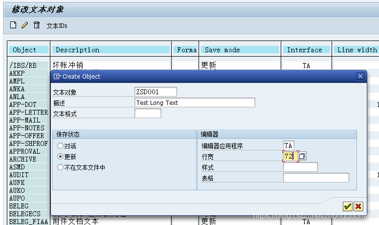 长文本在使用前,需要先进行配置,如果不配置是不可能往表STXH和STXL中写入文本值的。
