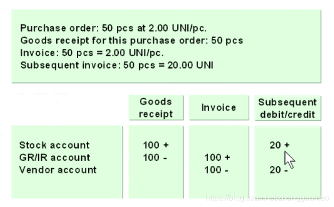 那么“后续借记”和“后续贷记”具体是什么意思呢?我们不妨参照一下上面的图,比如正常的采购发票校验做完了,后续还涉及到的费用,比如要再给供应商多少钱,或者由于某种原因供应商需要退给我们多少钱,这样的情况就会用到“后续借记”和“后续贷记”。