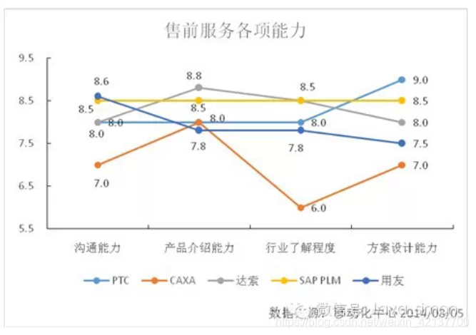 PLM的国际两大巨头PTC和达索在售前服务各项能力中的表现也非常抢眼,自身产品优异再加上自2012年以来改变在华的销售策略,使得原来在产品介绍和方案设计能力上的短板得到加强,甚至成为售前有力的关键能力。由于两大巨头主要还是面向高端用户市场,对于国内高端用户的国际业务了解程度透彻,方案设计的丰富经验令用户的满意度非常之高。达索加入的直销模式更是给售前加入一剂强心剂,对于产品和行业的深度解读往往让用户感受到超出预期的专业,成单率快速提升;而PTC虽然在华直销还未实现,不过其对于渠道伙伴的扶植越来越强,在各项能力上虽然不如达索这么亮眼,但在方案设计方面的培训已经起到显著效果,相信如果PTC能更重视中国市场采用达索的战略,其用户满意度还有提升空间。